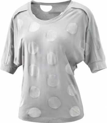 아디다스 by 스텔라맥카트니의 '스투디오 번 티'은 유기농 면 소재로 만들어 여름 티셔츠로 제격이다. 백 리스 톱에 케이프를 두른 듯한 독특한 디자인으로 시원하면서도 감각적인 스타일링이 가능하다. 앞 판에 속이 살짝 비치는 번 아웃 기법의 도트 프린트를 넣어 한층 발랄해 보인다.
