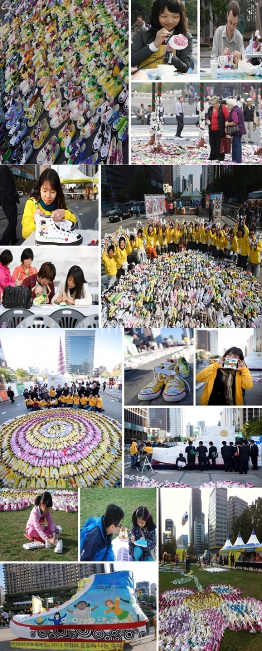 서울시와 대산문화재단 공동 주최로 운동화 위에 평화와 나눔의 이미지와 메시지를 담아 세계 각지의 빈곤 청소년들에게 전달하는 전 세계적 지구촌 나눔운동 '2012 희망의 운동화 나눔축제'가 오는 26~27일 양일간 광화문 중앙광장에서 열린다.