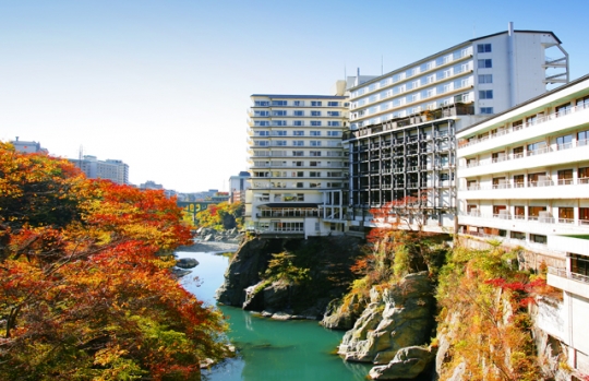 기누가와 계곡위에 우뚝 서있는 기누가와 프라자호텔.