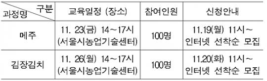 [서울시생활정보]전통내림솜씨 강좌 23·26일 개설