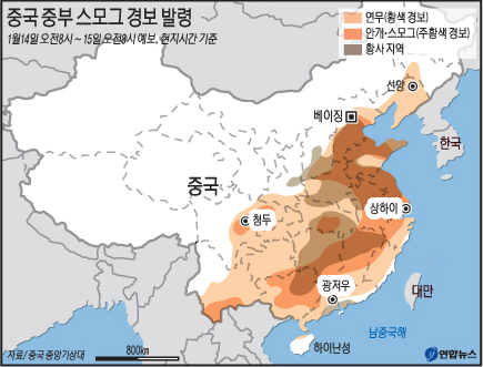 13일 중국 베이징 중심부에 위치한 자금성이 스모그로 뒤덮혀 있다.