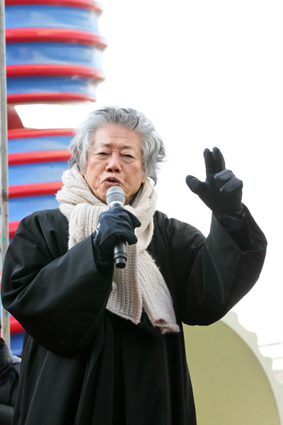 18일 오후 서울 청계광장에서 열린 민주노총 투쟁사업장 해결 촉구 결의대회에서 민주노총 조합원들이 한진중공업과 현대자동차 비정규직 문제등 5대 긴급 현안에 대한 해결을 촉구하는 시위를 외치고 있다. 민주노총은 이날 결의대회에 이어 19일 서울역에서 비상시국대회를 개최할 예정이다.