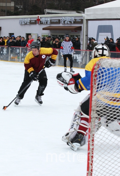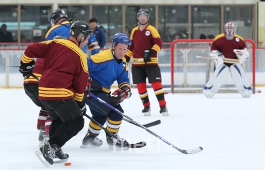 3일 오전 서울광장 스케이트장에서 한국전 휴전 협정 60주년 및 한국-캐나다 수교 50주년을 기념해 한국전 참전 캐나다 부대의 아이스하키 경기가 열려 시민들의 눈길을 끌었다. 이날 경기는 1952년 임진강에서 캐나다군이 벌였던 ‘임진강 아이스하키’ 경기를 재연한 것이다.