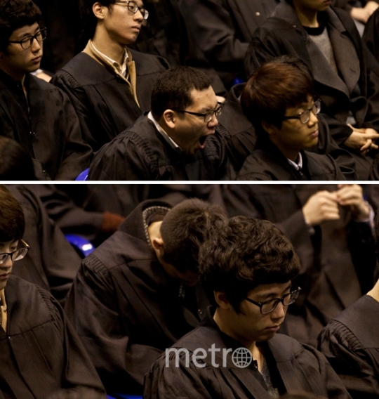 아까의 호응은 온데간데 없이 교장 선생님 말씀에 너도 나도 꿈나라로 가 버리고 말았습니다.
