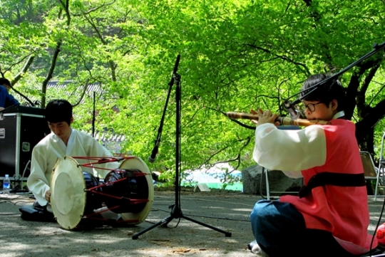 ▲지난해 열린 마곡사 신록축제 대금 연주 공연이 펼쳐지고 있다. / 공주시청 제공.