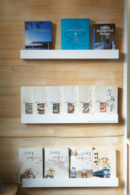 텅 빈 벽 중앙에 커다란 디자인 선반을 달고 그 아래 작은 티 테이블과 의자를 매치하면 잘 꾸민 카페의 구석 자리로 변신한다. 아이템 하나로 실용성과 장식 두 마리 토끼를 잡을 수 있기 때문에 인테리어 초보자도 과감하게 도전해 볼만하다.