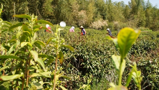 ▲ 우리나라 최초로 차가 재배된 '차 시배지'에서 농부들이 차를 수확하고 있다. /신화준 기자