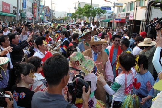 ▲ 관광객들과 지역주민들이 함께 어우러지는 길놀이 퍼레이드.