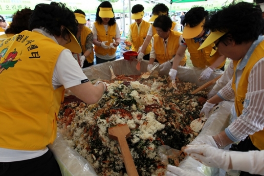 ▲ 박애의 정신을 나누는 '천인의 품바 비빔밥'.