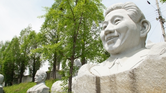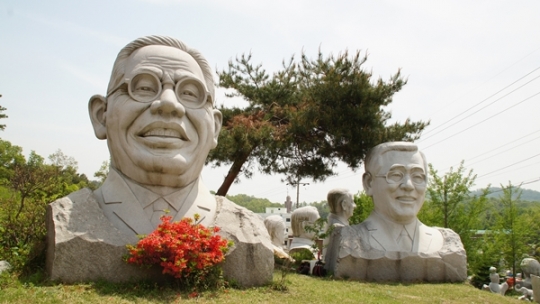 ▲ 큰바위얼굴 조각공원에 전시된 김구(사진 왼쪽) 선생과 반기문 총장의 조각품.