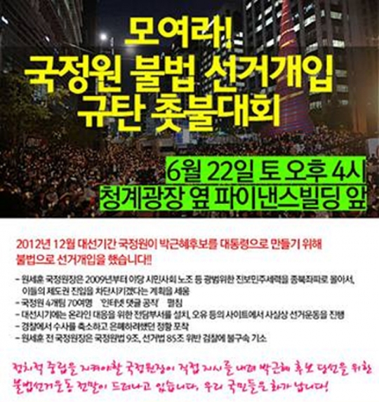 '국정원 정치.선거개입 사건'과 관련해 국정조사를 촉구하는 촛불집회가 21일과 22일 이틀에 걸쳐 진행된다.