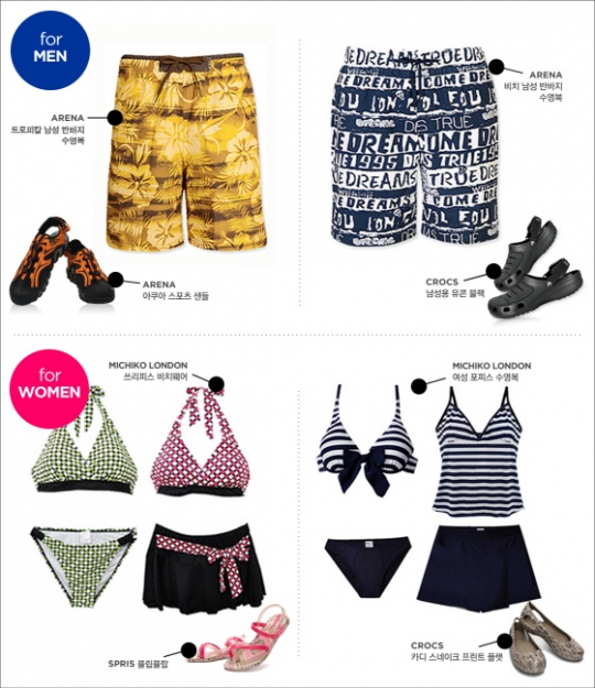 아웃도어스 관계자는 "수영복 패션을 연출할 때는 방수 아이템으로 인기를 끌고 있는 '아쿠아 슈즈'를 매치하면 한결 멋스럽다"고 설명했다.