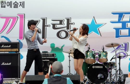 ▲ 의정부 행복누리축제 메인공연장에서 청소년 혼성 듀오가 열창을 하고 있다.