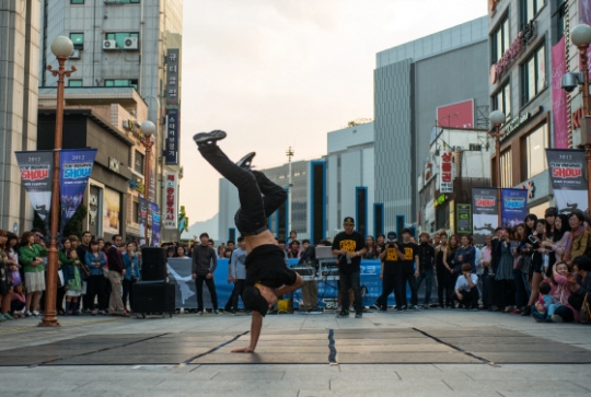 ▲ 의정부 행복누리축제장 행복로에서 비보이들이 열띤 공연을 펼치고 있다.
