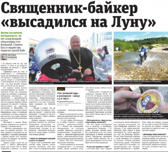 멘쉬코프 신부는 성당에서 조용히 기도를 드리며 마음을 다잡는 여느 사제들과 달리 마음의 여유를 찾고자 할 때면 항상 오토바이를 탄다고 밝혔다.