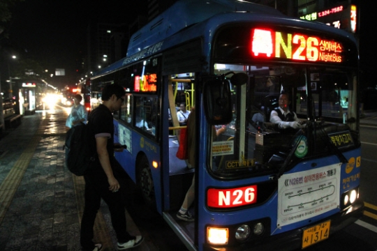 지난 21일 자정을 막 넘긴 새벽. 이미 버스가 끊긴 지하철2호선 합정역 버스정류장에 사람들이 옹기종기 모여 있다. 여행사에 다니는 배모(31)씨는 "막바지 여름밤을 즐기고 싶어 친구들과 '심야 버스' N26번을 기다린다"고 말했다.