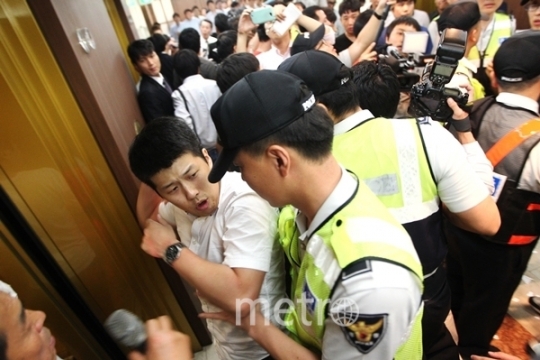 [포토] LG U+ 광대역 LTE 발표 기자회견장 '아수라장'으로 변해...욕설, 몸싸움