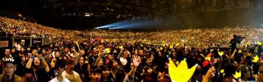 ▲ 지난해 12월 홍콩에서 열린 가수 빅뱅의 월드투어 공연에서 팬들이 빅뱅을 상징하는 왕관 모양 야광봉을 흔들고 있다.