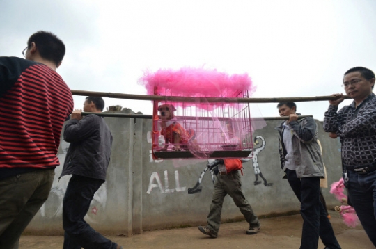 신문에 따르면 신랑견 '과이과이'는 신부견 '란란'을 맞이하기 위해 16개 예물 보따리가 실린 가마를 타고 왔다. 견공의 집에서 예식장까지 거리는 30㎞. 멋진 예복을 폼나게 차려입은 과이과이는 사람 4명이 메는 가마를 타고 식장에 입장했다. 가마가 들어서자 여기저기서 색종이 꽃가루가 휘날리고 들러리 개들이 목청좋게 '합창'했다.