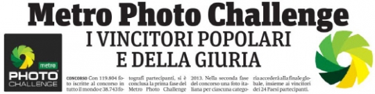 최근 메트로 이탈리아는 메트로 포토 챌린지 2013(Metro Photo Challenge 2013)의 결과를 발표했다. 이번 대회에는 총 3만 8743명의 참가자가 11만 9804장의 사진을 제출한 것으로 알려졌다.