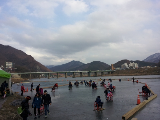 얼음썰매장에서는 전통썰매, 가족 썰매, 스노우 래프팅 등 가족이나 연인, 친구끼리 즐길 수 있는 놀거리가 펼쳐지고 별도로 마련된 눈썰매장도 축제의 재미를 더한다.