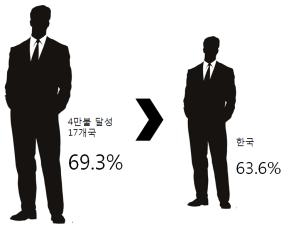 1인당 GDP 2∼4만불 기간중 GDP 대비 서비스업 부가가치 비중