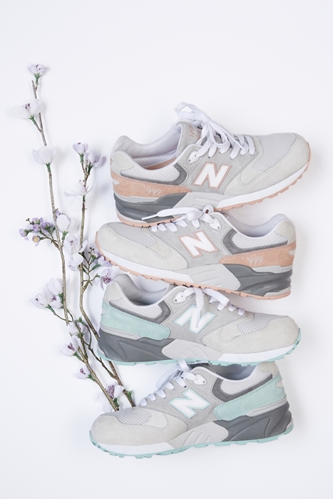 벚꽃을 콘셉트로 한 뉴발란스의 999 체리 블라썸은 출시 하루 만에 완판을 기록하는 등 폭발적인 인기를 얻고 있다. 이번 시즌 트렌드인 파스텔 컬러 디테일의 조화가 돋보이는 이 제품은 스웨이드와 매쉬 원단을 사용했으며 쿠셔닝 기술인 '애브조브 시스템'을 신발 뒷꿈치에 적용해 착화감이 우수하다.