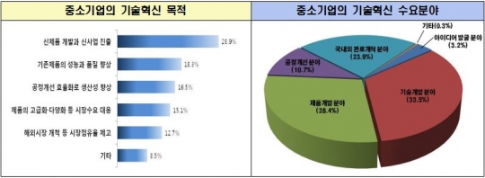 중소기업의 기술혁신 목적 및 기술혁신 수요분야