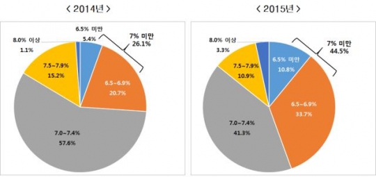 내년 경제성장률에 대해서는 85.8%가 7.5% 미만으로 응답했고, 44.5%는 7%미만으로 예상해 올해보다 성장이 더 둔화될 것으로 보는 기업이 많았다.
