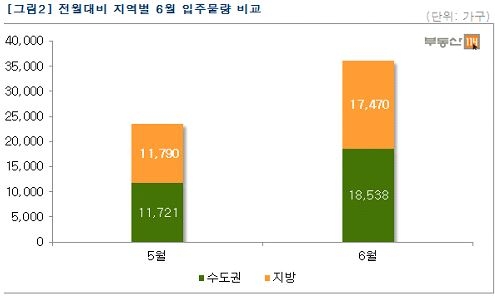전월대비 지역별 6월 입주물량 비교/ 부동산114 제공