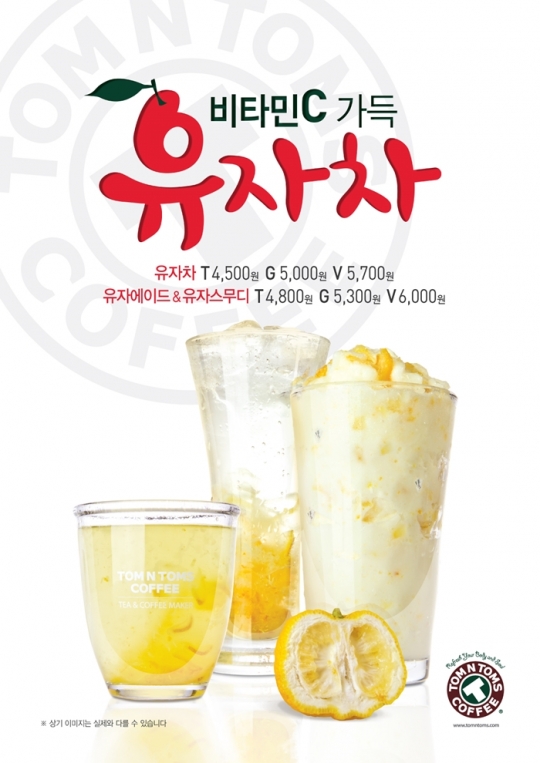 탐앤탐스는 국내산 유자를 절인 유자청을 넣어 상큼한 과육이 씹히며, 달콤한 유자향이 가득한 것이 특징인 유자차와 유자에이드, 유자스무디 등이 인기를 끌고 있다.