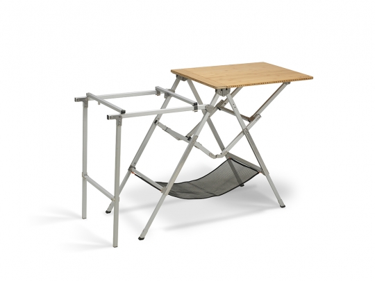 콤팩트 키친 테이블은 수납 선반을 비롯해 올인원 설치가 가능한 것이 특징이다. 일반적으로 대나무를 사용하는 타 캠핑용품 브랜드들과 달리 자작나무를 사용한 테이블로서 소비자가 호흡하는 공기의 질까지 생각했다고 회사 측은 전했다.