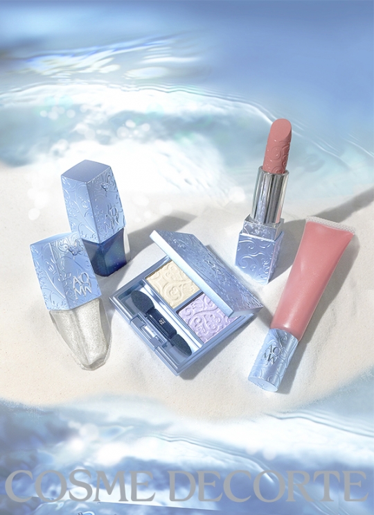 한정 출시되는 코스메 데코르테의 AQMW 라인 여름 메이크업 컬렉션 '카프리 블루'는 독특한 블루 패키지로 소장 가치를 높였다. 특히 아이섀도우 팔레트는 바다를 닮은 라이트 블루와 뜨겁게 내리쬐는 햇빛을 표현한 페일 옐로우가 조화를 이뤄 신비로운 눈매를 연출한다.