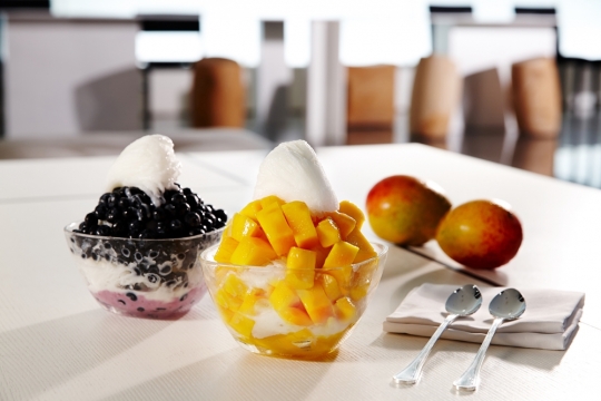 애플망고 빙수는 곱게 간 우유 얼음 위에 제주산 애플망고를 올린 후 직접 삶은 팥과 수제 망고 셔벗을 곁들어 먹는 신라의 시그니처 메뉴다. 빙수 중간 중간에 가미된 망고 처트니가 더욱 깊은 맛을 자아낸다. 블루베리 빙수는 우유 얼음 위에 블루베리와 블루베리 콩포트를 올리고 직접 삶은 팥과 바닐라 아이스크림을 곁들인 메뉴다.