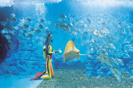 아울러 수중발레쇼는 싱크로나이즈드 국가대표 출신의 연기자가 바다생물이 가득한 대형 수조에서 감미로운 음악에 맞춰 연기를 펼치는 수중공연이다. 특히 연기자의 우아한 몸짓이 다양한 물고기들과 함께 어우러진 장면은 상상을 초월하는 환상적인 느낌을 전해준다.
