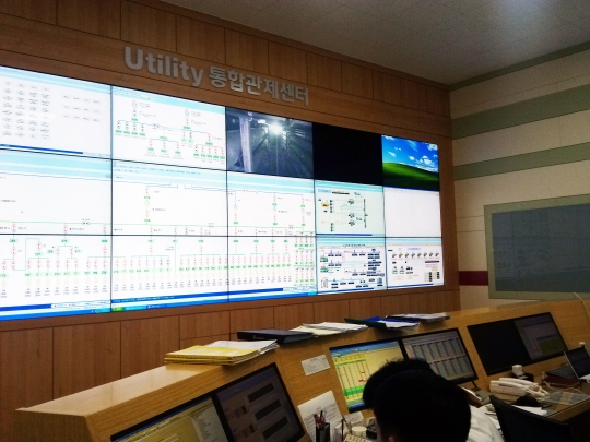 청주 사업장의 경우 물을 냉각시켜 냉방과 제습 기능을 하는 공조시설인 칠러(Chiller)의 전기사용 효율 향상과 클린룸*의 제습운전 개선을 위해 지난 6월 BEMS를 도입했다.