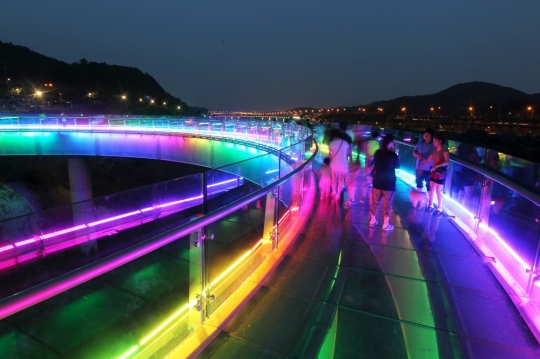 경인 아라뱃길은 뱃길을 따라 다양한 테마공원과 인공폭포, 전망대 등이 조성돼 있어 수도권 시민들에게 더없이 좋은 산책 장소다. 특히 뱃길을 가로지르는 12개의 독특한 모양의 교량들은 밤이면 오색조명으로 장식돼 낭만적이다. 공항철도 검암역·계양역·청라역 등 세 개 역에서 가까워 언제든 부담 없이 다녀올 수 있고 역앞에 자전거 대여소가 있어 하이킹을 즐기기에도 좋다.