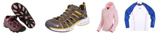 (왼쪽부터) 네파 옥토퍼스2, 아이더 아쿠아슈즈, 이젠번 래쉬가드, 포니 래쉬가드.