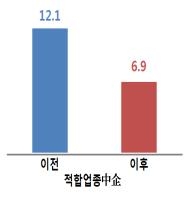 적합업종 지정 전후 2년간 중소기업의 매출액증가율.