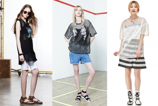 시원한 메시 소재의 튜닉(허리 밑까지 내려오는 여성용 블라우스)도 인기다. 하나만 입기 민망한 슬리브리스 위에 매치할 수 있는 활용도 높은 스타일로 어떤 옷과 매치하느냐에 따라 전혀 다른 분위기를 낼 수 있다. 화려한 플라워 원피스와 함께 매치하면 여성스러운 느낌도 함께 전달할 수 있다.