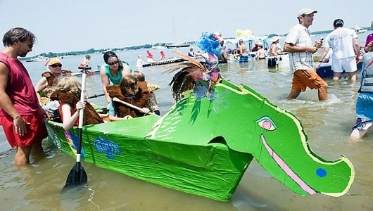 대회에 참여한 18개 팀은 자신만의 노하우와 창의력을 발휘해서 만든 보트를 타고 호수 중간에 떠 있는 부표로 향했다. 심사위원들은 창의력과 속도, 보트의 외관을 평가했다.