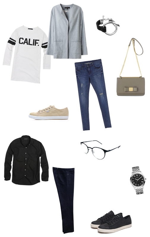 여성의 경우 간단한 화이트 티셔츠에 청바지를 이용하면 편안하면서도 세련된 분위기 연출에 도움이 된다. 차분한 그레이 색상의 장식이 없는 아우터를 걸치면 도시적인 매력을 더할 수 있다.