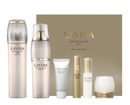 '라비다 모이스처 솔루션 2종 기획세트'(10만원)는 바캉스 이후 푸석해진 피부로 고민중인 20대를 위한 제품이다. 메마른 피부에 수분을 채워주는 고보습 라인으로 피부 근원의 힘을 키워주는 파워셀 성분이 함유돼 있어 오랫동안 촉촉함을 유지시켜준다.