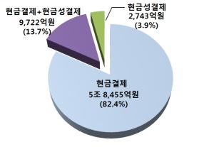 100대 기업의 추석前 협력사 납품대금 지급수단별 비중.