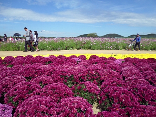 특히 한·중·일 3국의 국화 작품을 전시하는 공간과 국화와 코스모스 화단은 탄성을 자아내기에 충분하다. 또 축제 기간에는 수준 높은 국화 작품을 선보이는 전시대회가 함께 개최돼 관람객들의 눈길을 사로잡는다.