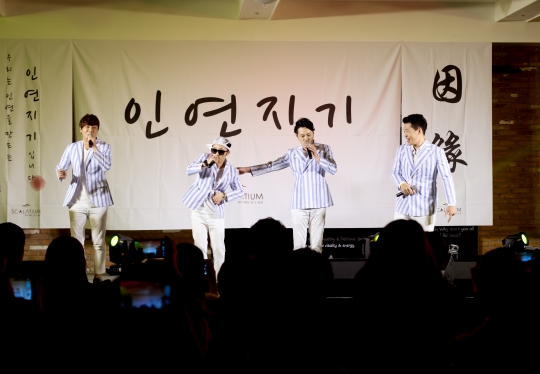 스칼라티움 수원영통점 오픈을 기념한 행사에서 울랄라세션이 공연하는 모습.