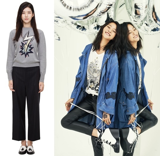 젠티 '번개힐 자카드 니트', 럭키슈에뜨'로즈 블룸 재킷'.