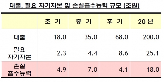 대출, 필요 자기자본 및 손실흡수능력 규모. /금융연구원 제공