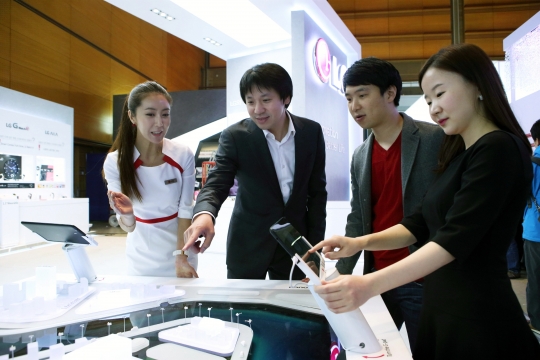 LG전자는 정보통신기술(ICT)을 기반으로 한 미래의 우리 생활의 변화를 보여줬다. 특히 스마트카는 스마트폰을 차량에 올려놓으면 근거리무선통신(NFC) 기술을 활용해 차량이 다양한 기능을 구현한다. 차량이 스마트폰의 개인정보를 인식, 맞춤형 음악을 틀어주고 SNS를 음성으로 실행하는 등 미래형 스마트카의 모습을 보여준다.