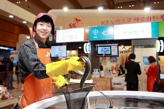 SK텔레콤은 '2014 창조경제박람회'에서 정보통신기술(ICT)을 활용해 변화하는 전통시장 관련 솔루션을 선보였다. /SK텔레콤 제공